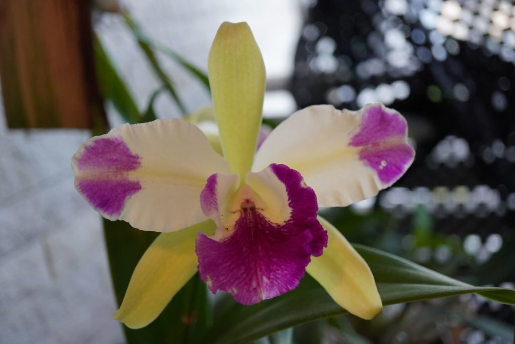 交配種のカトレアは我が家にはあまりないのですが、緑とマゼンタの対比がきれいだなと思って購入しました。去年はつぼみを虫にかじられて咲きませんでしたが、今年はやっと開花。3輪付いたのですが、途中で一輪落ちてしまって、最終的に二輪咲きました。