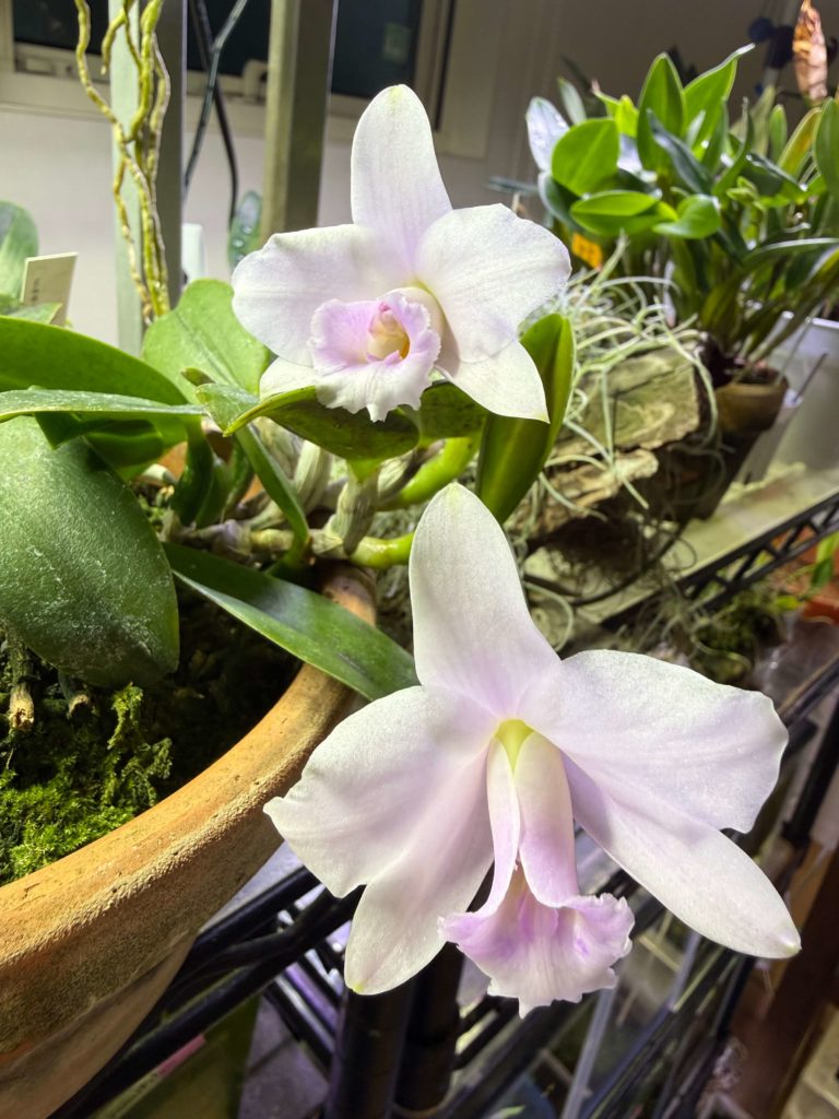 alaoriiが二輪咲きました。株が大きくなってからは二輪ずつ咲くようになりましたね。リードがこの方向ともう片方にあるんですが、交互に咲いているような感じになります。